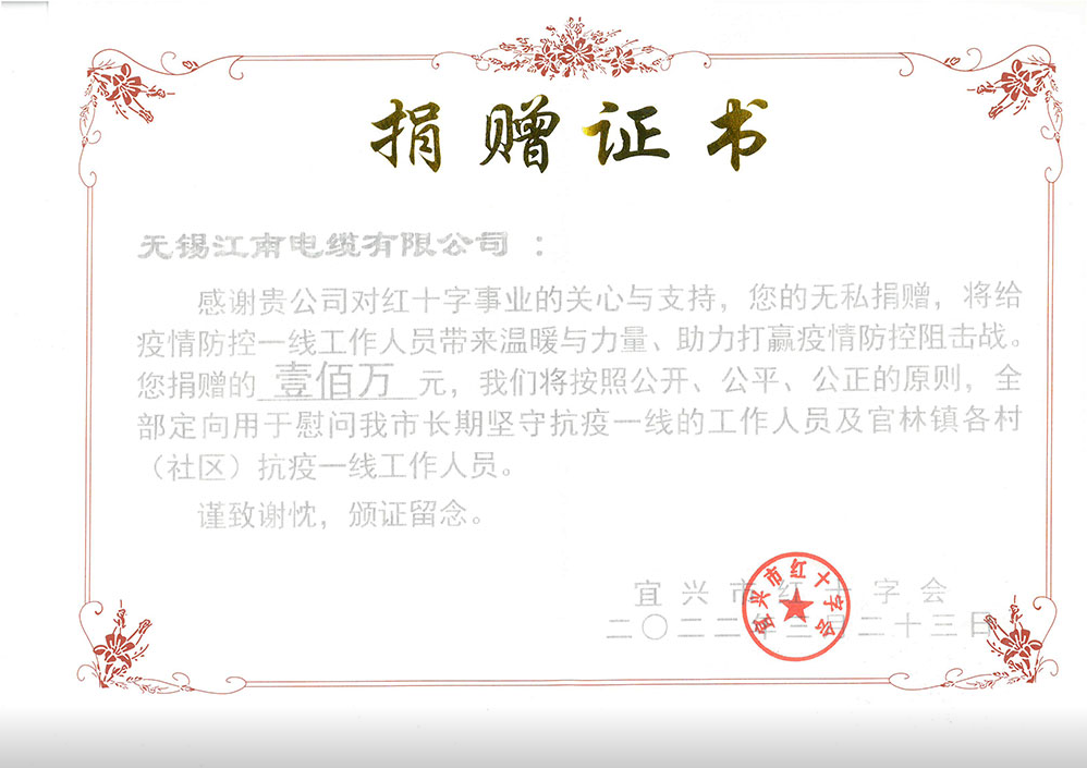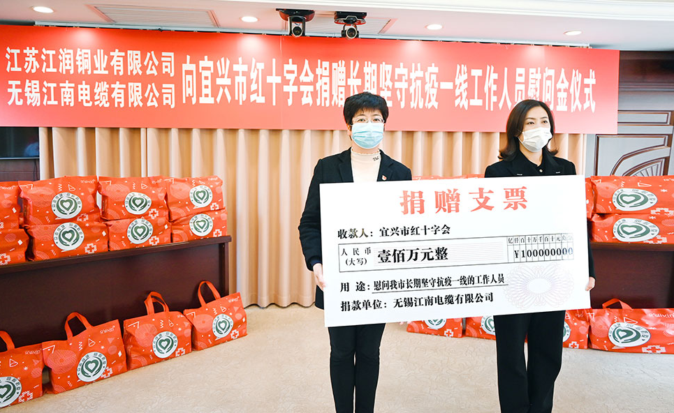 向宜兴红十字会捐赠100万一关心、关爱长期坚守抗疫一线工作人员